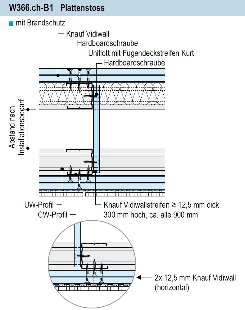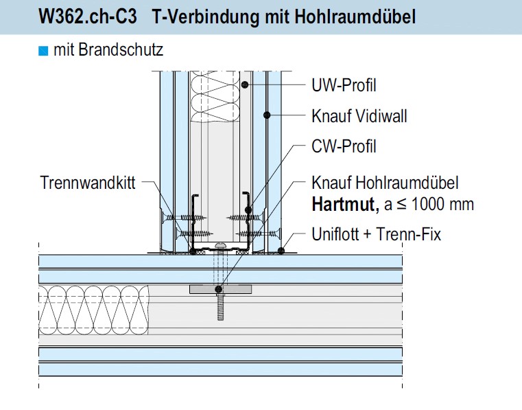 231.300 Profile UW und CW, mm 100x0,6. Dämmen mit Mineralwolle. |