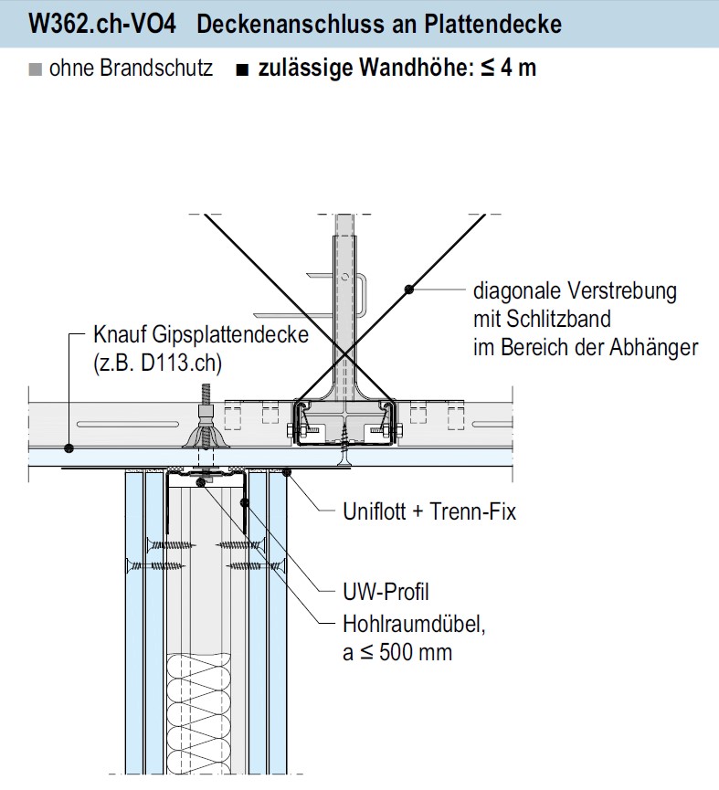 232.200 Profile UW und CW, mm 75x0,6. Dämmen mit Mineralwolle. |