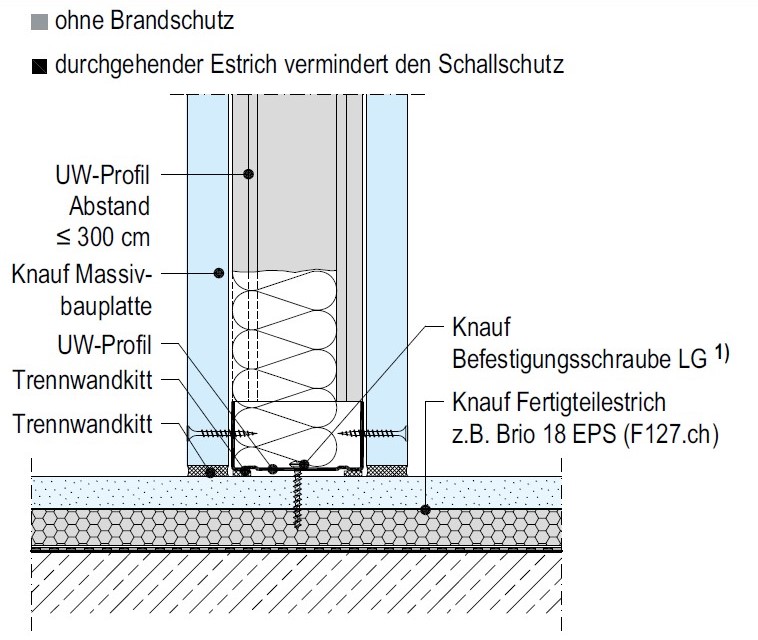 231.310 Gipsfaserplatten Dicke mm 12,5. Ständerwand Dicke mm 125,0. Bewertetes Schalldämmmass Rw min. dB 48. Feuerwiderstandsklasse EI 30. |