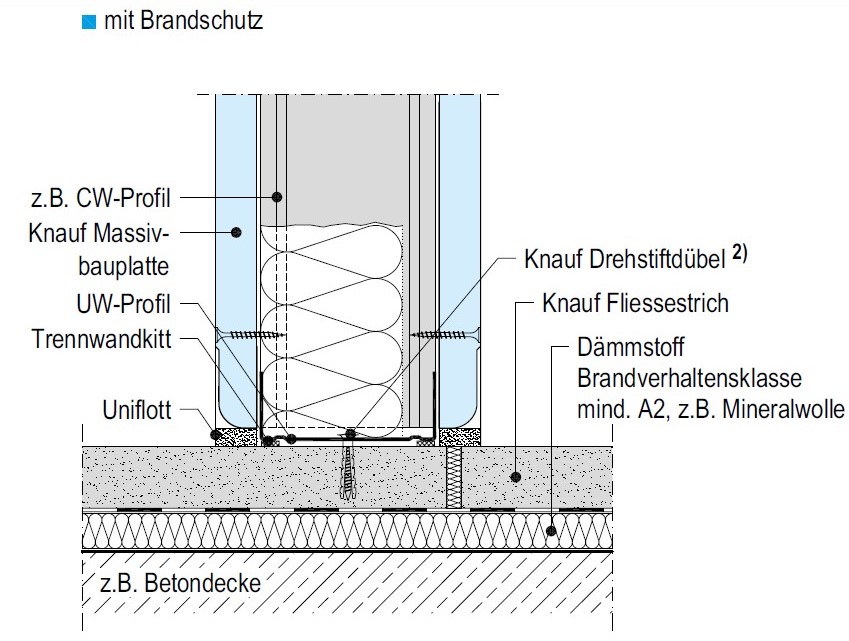 231.110 Gipsfaserplatten Dicke mm 12,5. Ständerwand Dicke mm 75,0. Bewertetes Schalldämmmass Rw min. dB 45. Feuerwiderstandsklasse EI 30. |