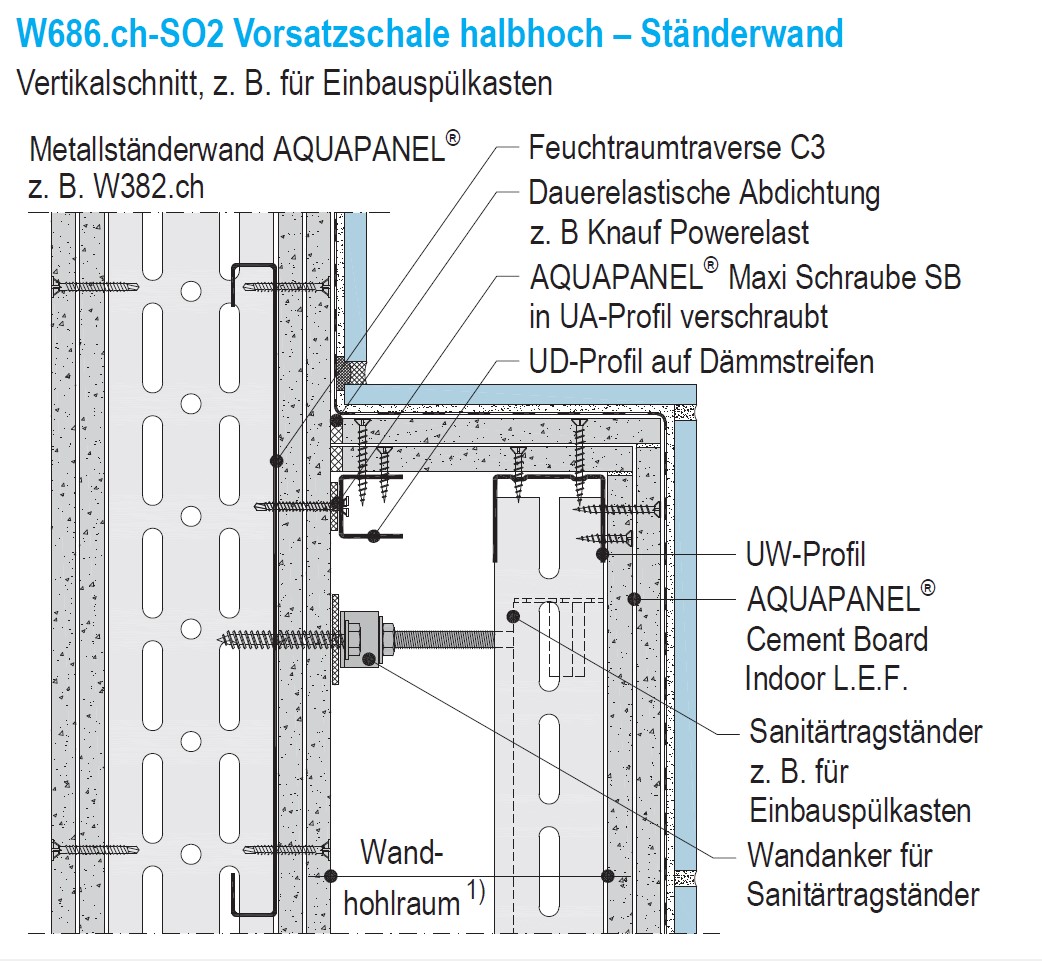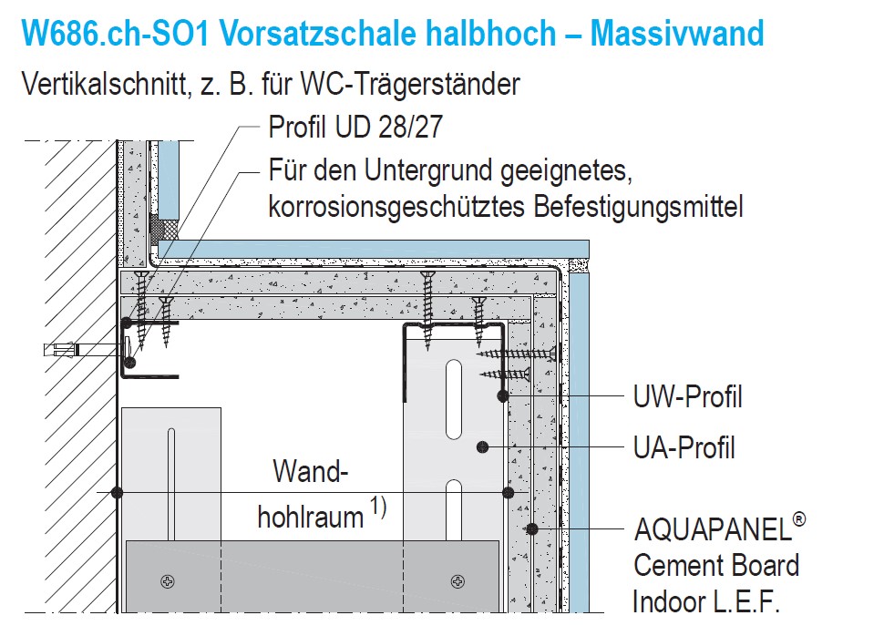 441.000 Wandbekleidungen auf tragfähigen Untergrund befestigen. Ohne Dämmung, Beplankung 1 Lage zementgebundene Leichtbeton-Bauplatten. |