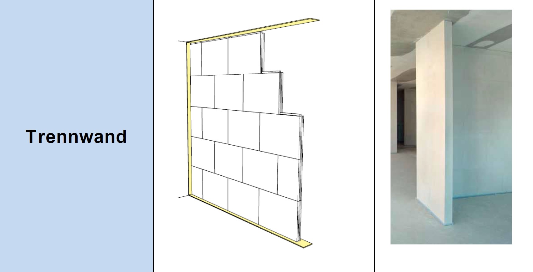 350.000 Vorsatzschalen aus Gips-Wandbauplatten ohne Unterkonstruktion |