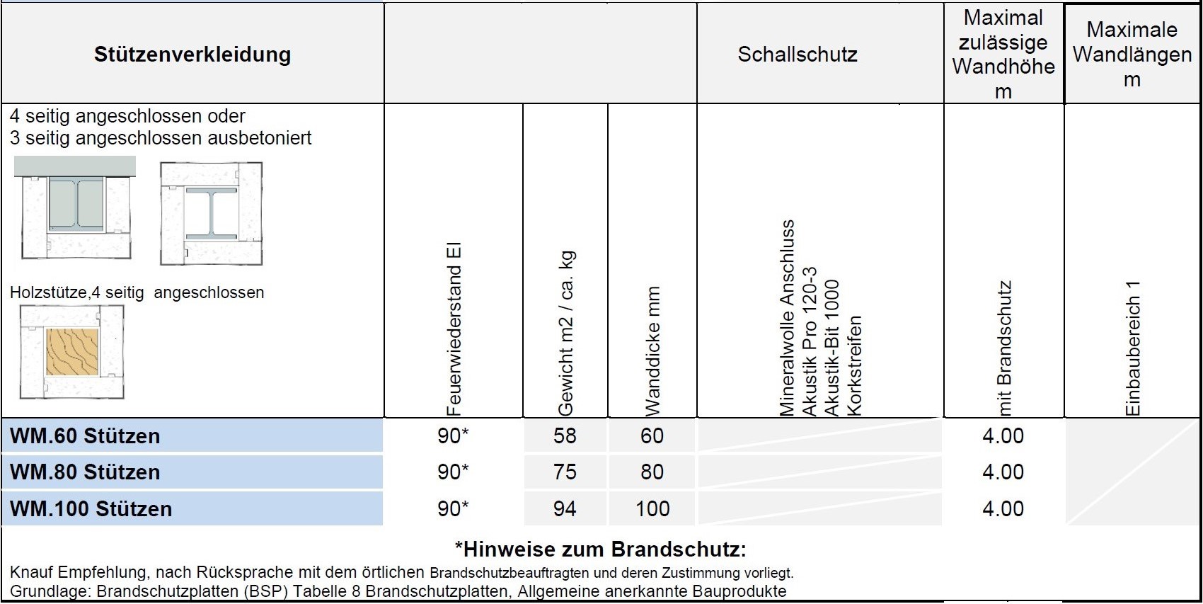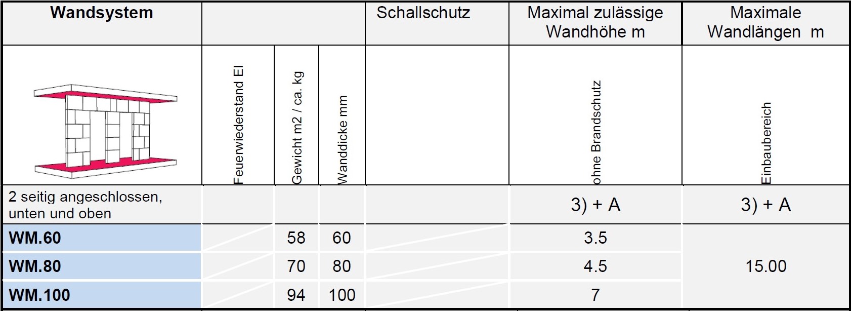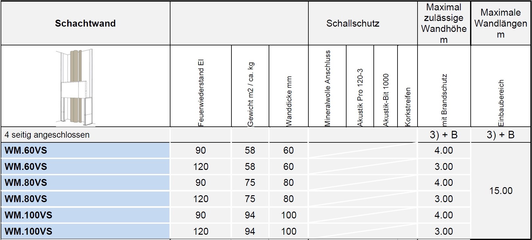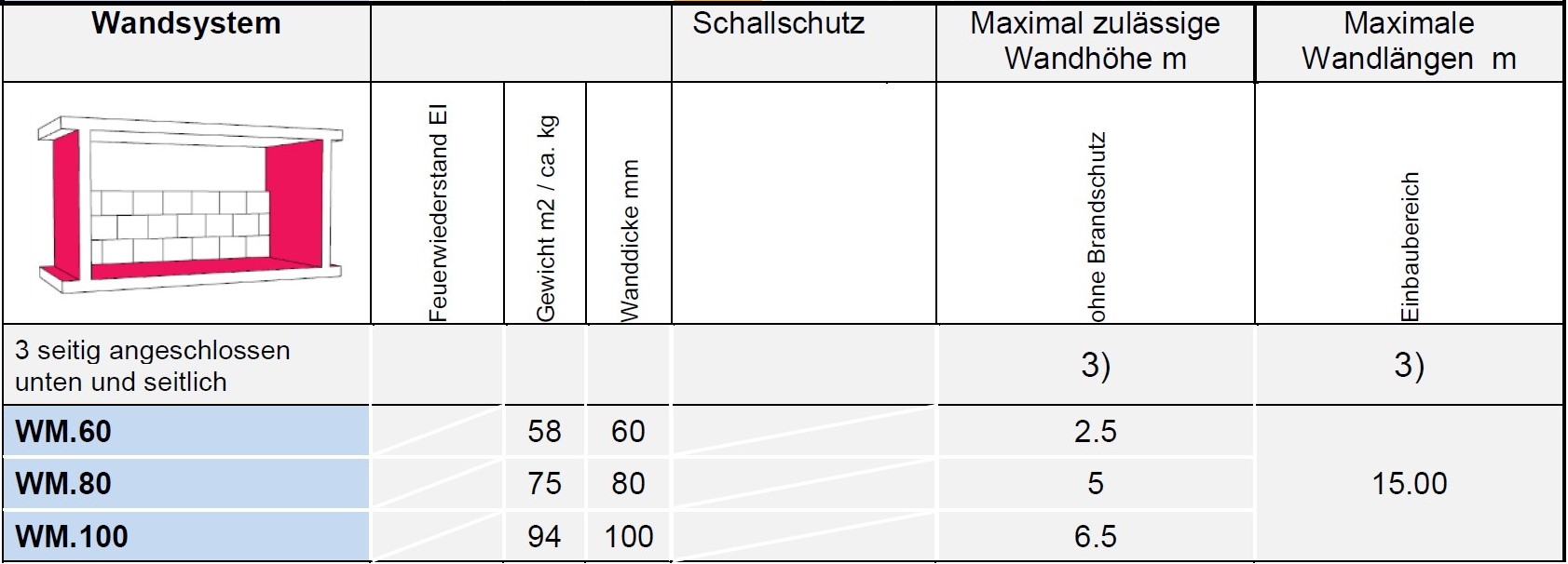 251.210 1. Schale Dicke mm 60. 2. Schale Dicke mm 60. Wanddicke mm 160. Bewertetes Schalldämmmass Rw min. dB 59. Feuerwiderstandsklasse EI 90. |