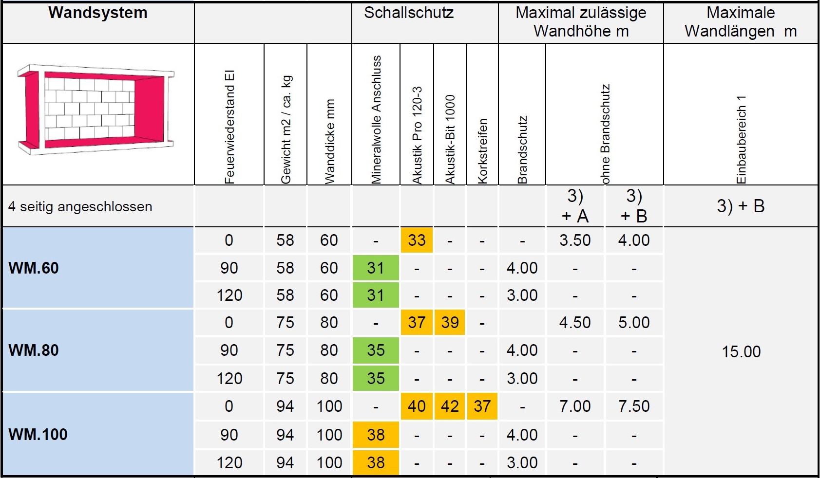 251.140 Dicke mm 140. Bewertetes Schalldämmmass Rw min. dB 45. Feuerwiderstandsklasse EI 120. |