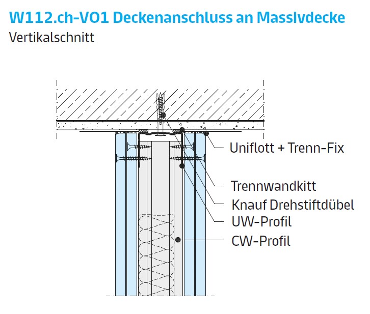 212.300 Profile UW und CW, mm 100x0,6. Dämmen mit Mineralwolle. |
