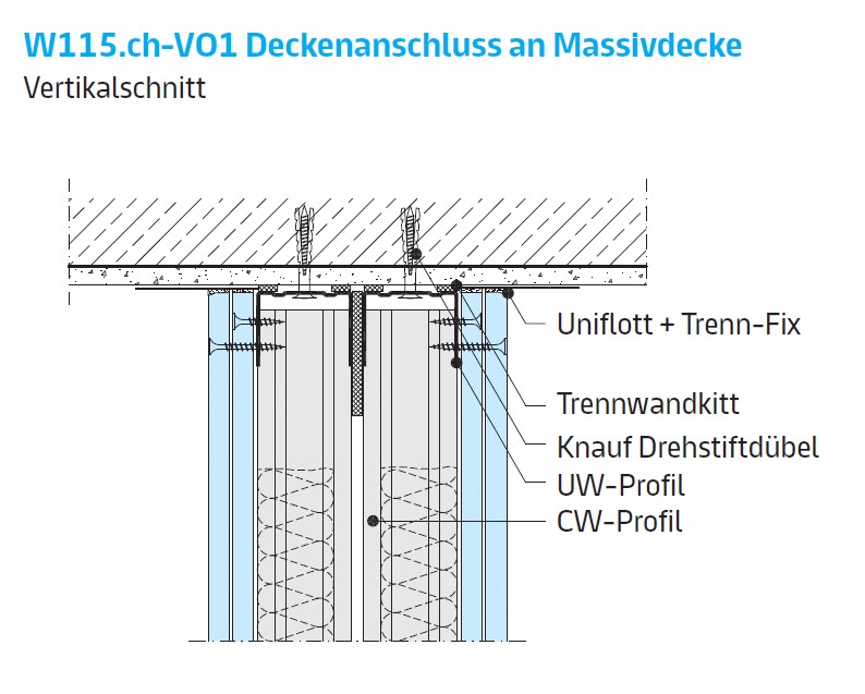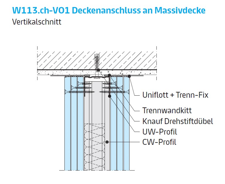213.400 Profile UW und CW, mm 125x0,6. Dämmen mit Mineralwolle. |