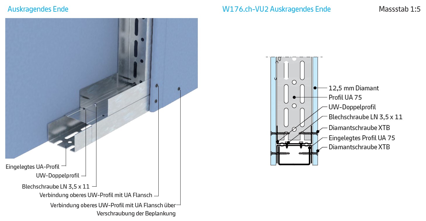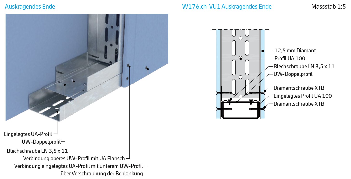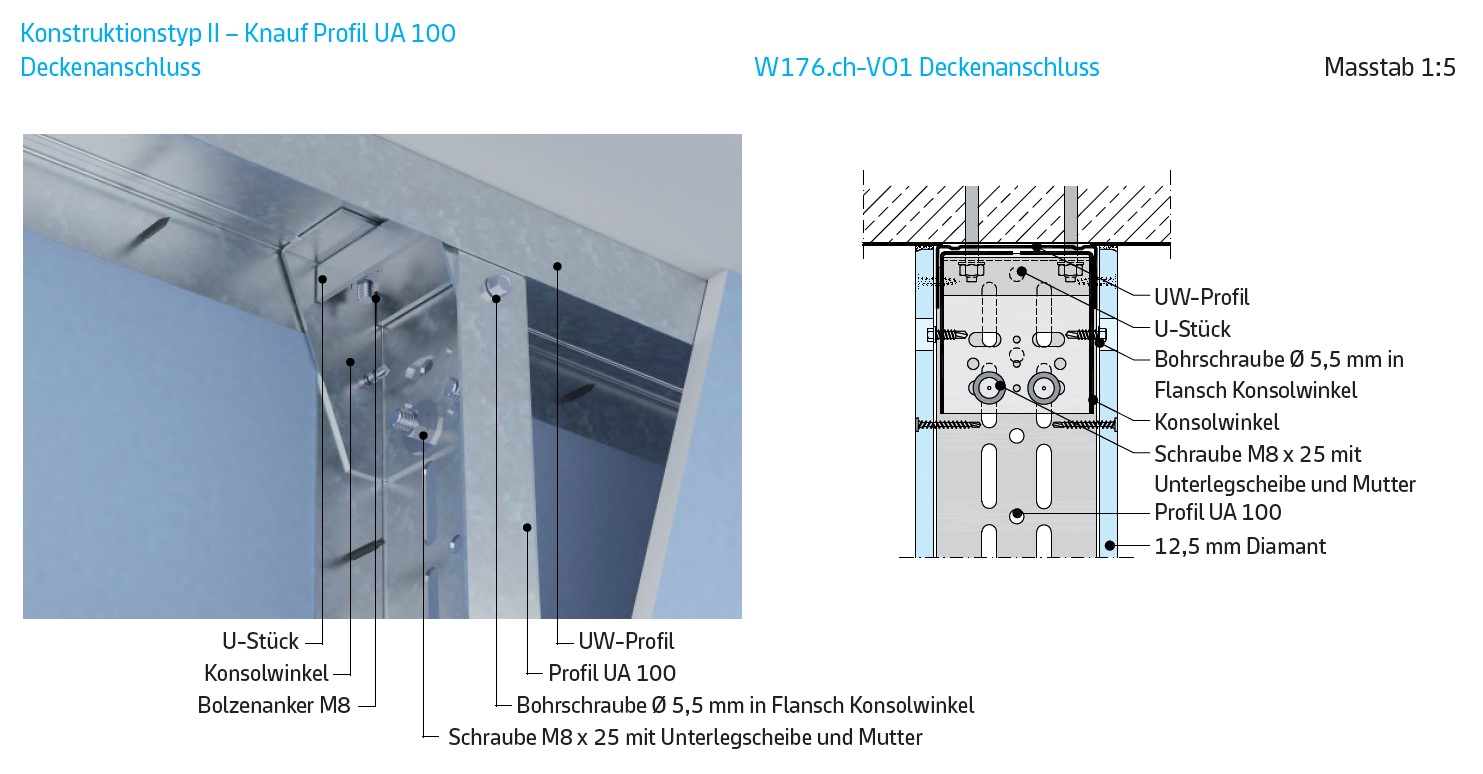 261.610 Gipsplatten Typ A, Dicke mm 12,5. Deckenschürze Dicke mm 175,0. Arbeitshöhe bis m 3,00. |