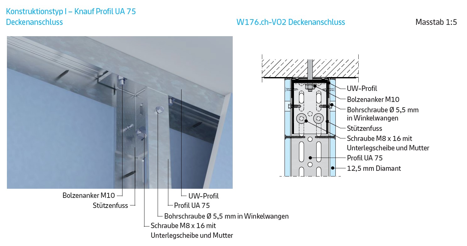 261.110 Gipsplatten Typ A, Dicke mm 12,5. Deckenschürze Dicke mm 125,0. Arbeitshöhe bis m 3,00. |