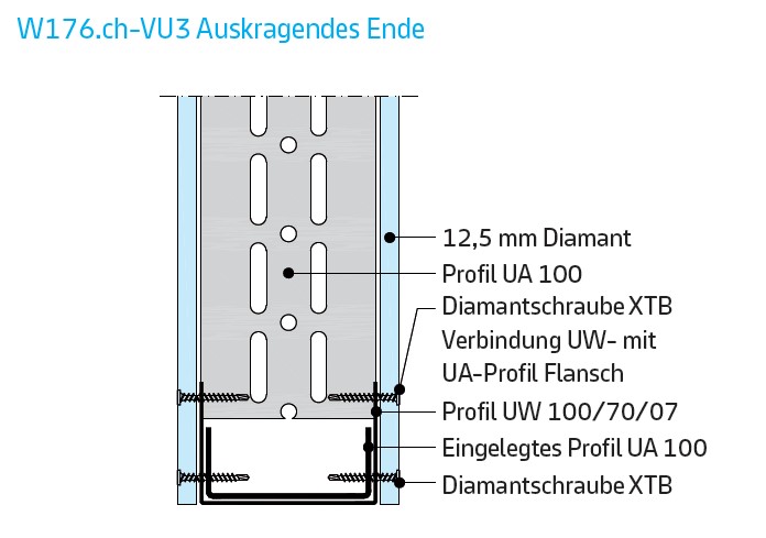 261.300 Profile UW und CW, mm 125x0,6. Dämmen mit Mineralwolle. |
