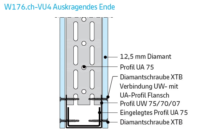 261.100 Profile UW und CW, mm 75x0,6. Dämmen mit Mineralwolle. |